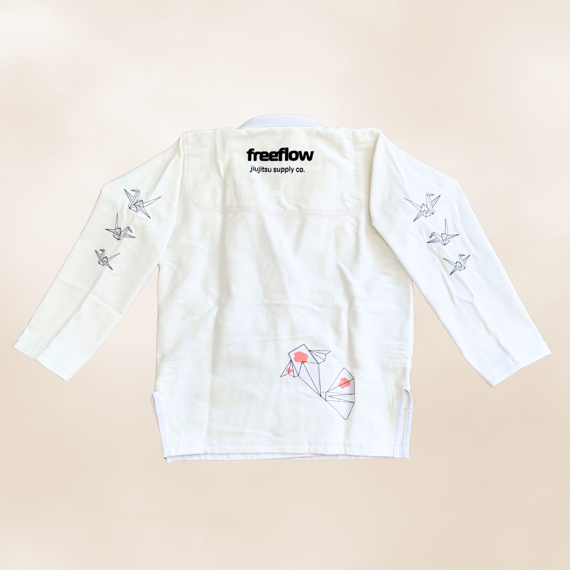The Flight / Flow Gi by Freeflow Jiujitsu is a tribute to the art of movement—on and off the mats. The Japanese origami cranes and koi fish designs capture the spirit of resilience, transformation, and longevity—all traits we aspire to embody in jiujitsu, and in life.